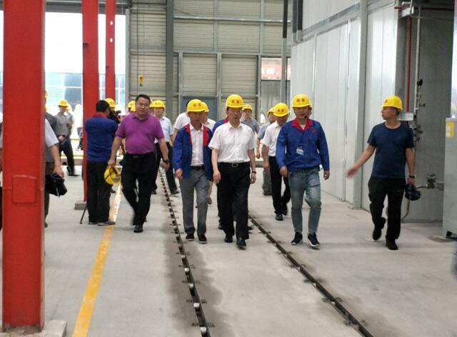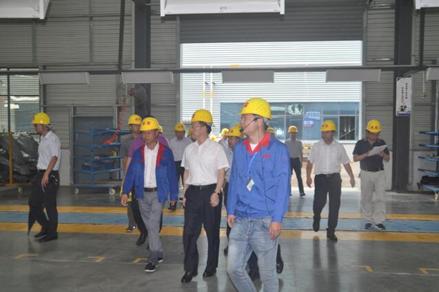 2018年7月13號東津新區(qū)(經(jīng)開區(qū))第二季度項(xiàng)目拉練市委書記李樂成同志在湖北新富車身股份有限公司參觀視察指導(dǎo)工作。